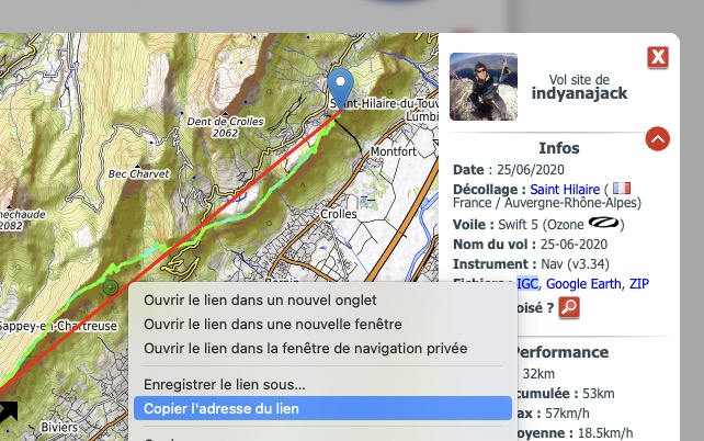 3. Tu peux enregistrer une trace directement depuis ton compte Syride en copiant/collant le lien du fichier igc généré par Syride