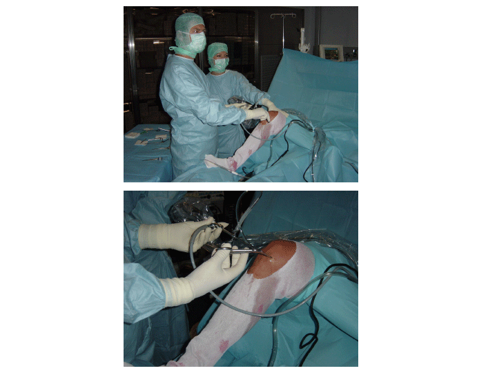 L’arthroscopie est une technique opératoire qui permet, grâce à une petite caméra (arthroscope) introduite par de petites incisions, d’explorer l’intérieur de l’articulation et de traiter les lésions rencontrées. Cette technique est minutieuse et délicate puisqu’il faut veiller avec l’arthroscope et les instruments chirurgicaux, à ne pas abimer le cartilage. L’arthroscopie doit être réalisée au bloc opératoire par un chirurgien qualifié en arthroscopie.