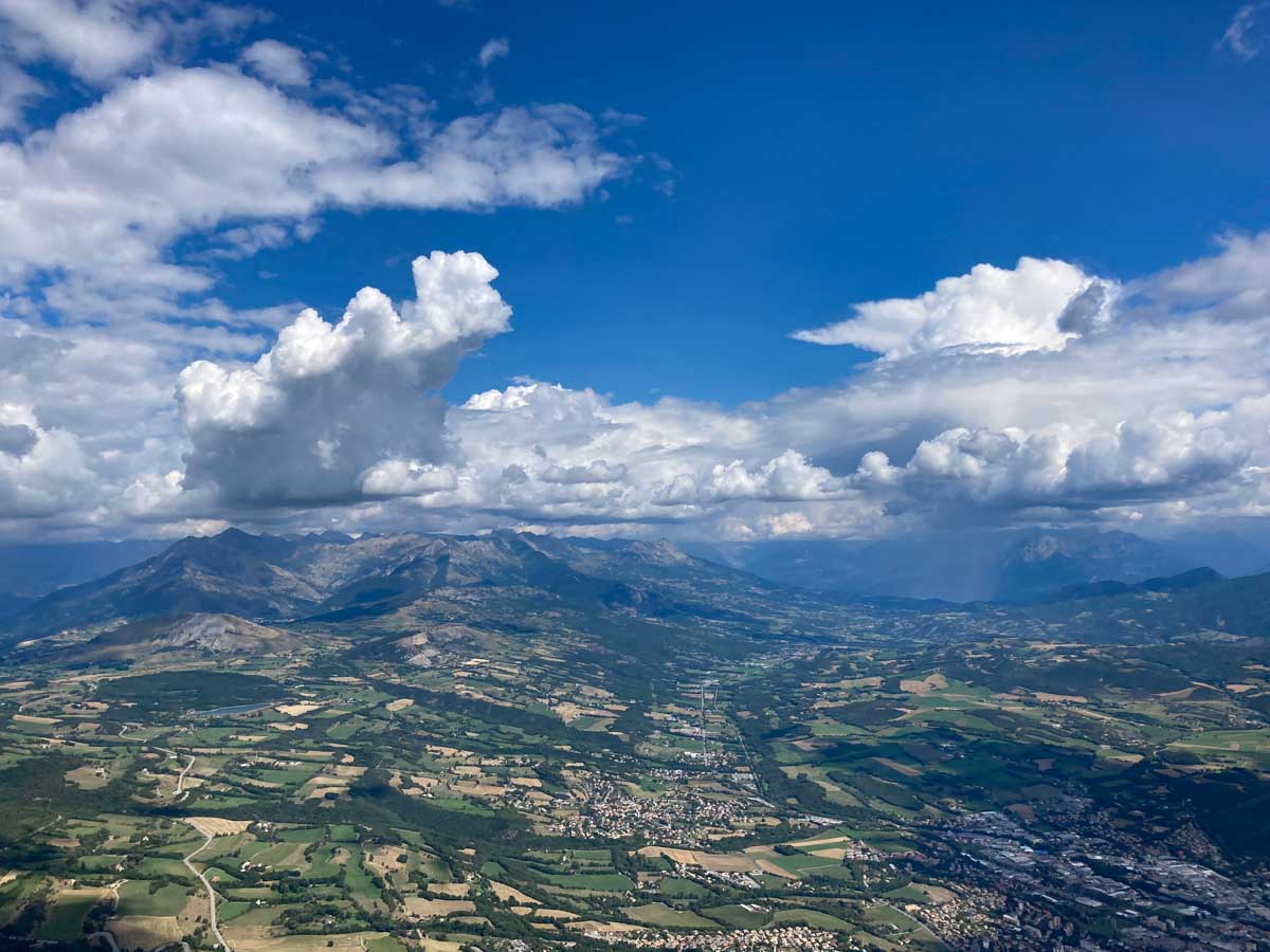 Les compétiteurs ont rendez-vous le samedi 21 à Laragne à 18h pour les inscriptions et un premier breifing. Or ce jour là semble être un jour fumant selon météo Blue. Je propose donc à notre équipe de se retrouver samedi à 10h au camping de Laragne qui est aussi l’atterrissage officiel. Je connais bien le site pour y avoir beaucoup volé en Delta il y a quelques années. Ça promet d’être une journée idéale pour découvrir le coin et nous entrainer pour les prochaines manches. De notre petit groupe je suis le seul à avoir volé en cross de puis la montagne de Chabre. Je propose donc une belle balade d’entrainement, un petit 100 km en triangle qui doit nous mener du col St jean au Pic de Bure en passant par les antennes de Beaumont et Aspres puis un retour par Céüse et Aujour. Et ça marche ! Je boucle en 4h 42, JJ juste derrière pose à l’entrée de Laragne et Alfredo se paye le luxe d’agrandir le triangle vers Gap. Seul Émilio s’arrêtera en route. Nos amis vénézuéliens volent en Bonanza 2 Gin – C pour Alfredo et Queen 2 Triple Seven – C pour Émilio. JJ a investi dans une Allegro Phi – C pour l’occasion et moi je vole toujours sous une swift 5 Ozone – B.