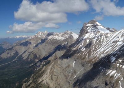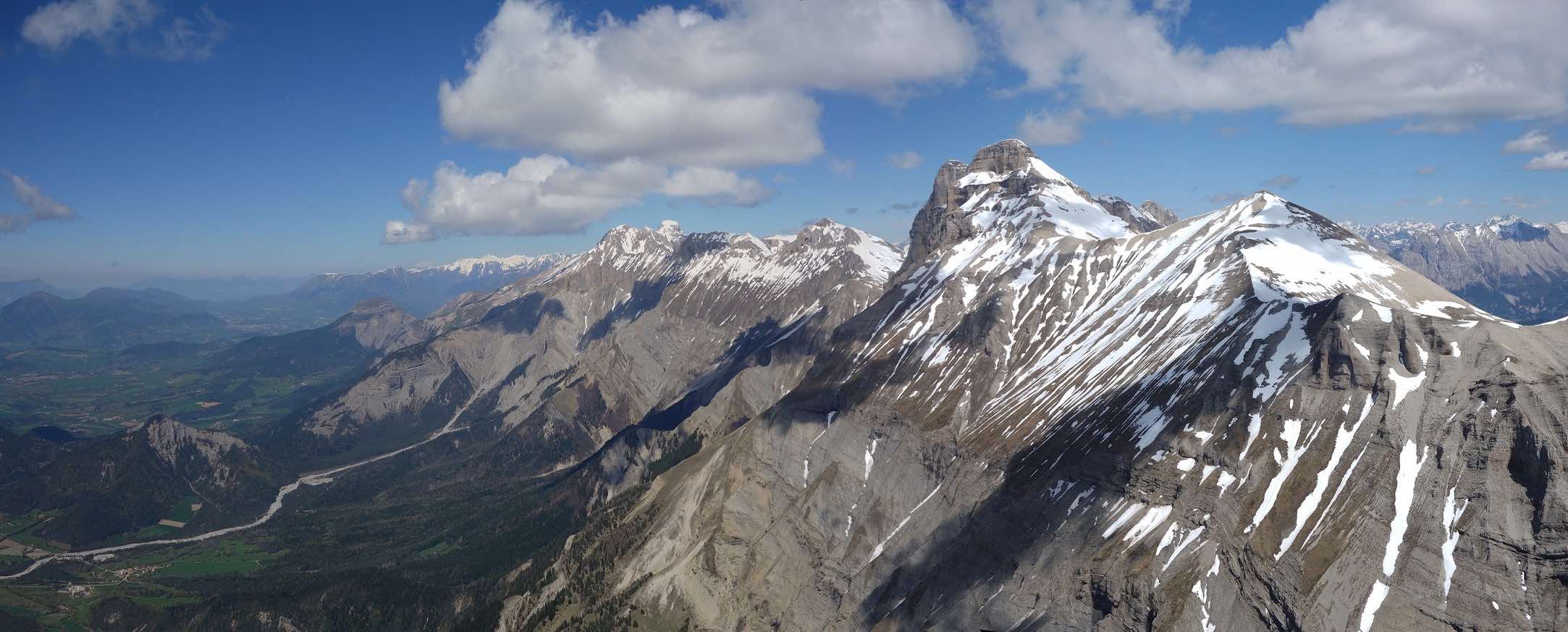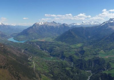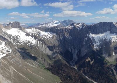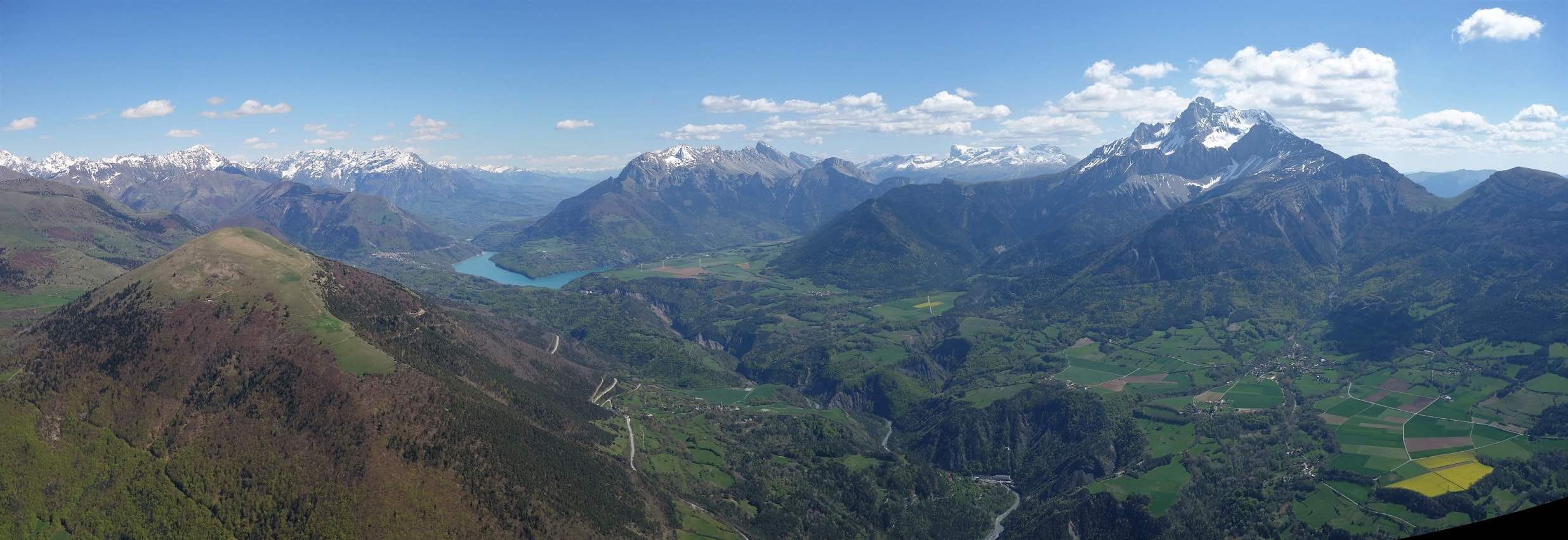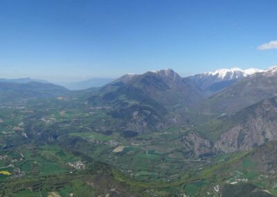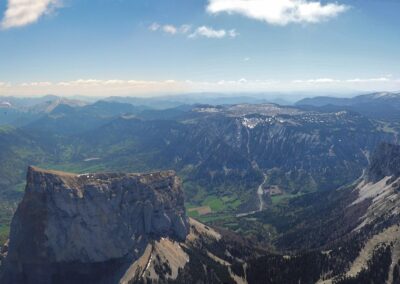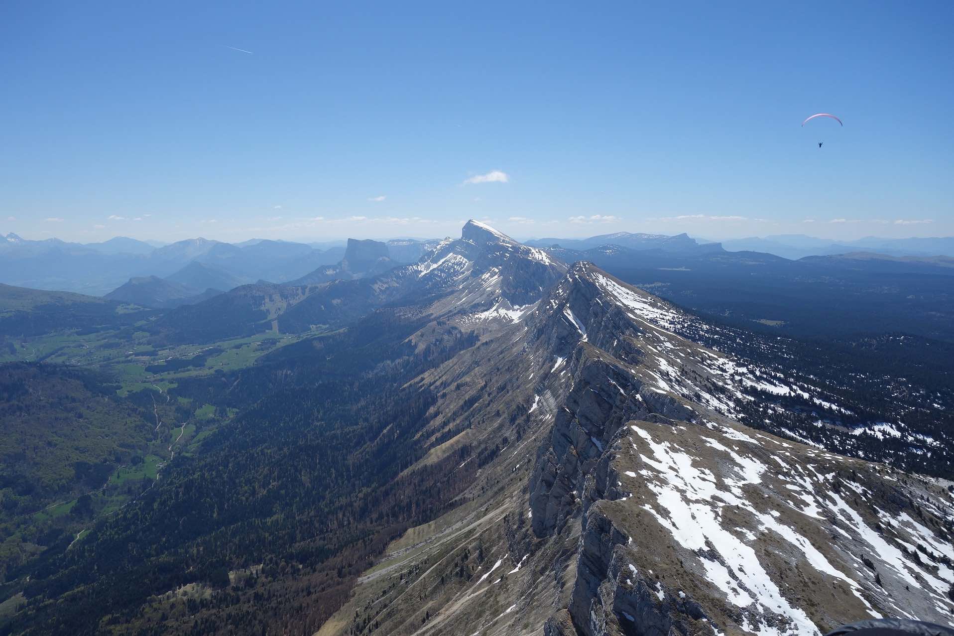 Sur une idée de Jean-Marc on se retrouve au col de Comboire vers 10h ce mercredi 3 mai 2023. Il est accompagné de Fabien, un ancien Deltiste qui évoluait en Équipe France et qui s’est mis au vol rando. Nous montons au déco du Peuil, une première pour JM et moi-même. Déco magnifique, bien alimenté, plein est, il est 11h, 3 voiles qui ont décollé du Moucherotte nous passent dessus. 11h 20, on envoie la pâtée ! On part direct à droite vers le sud, JM sous sa Savage, Damien sous j’ai oublié quoi mais pas une aile perf et moi sous ma fidèle Alpina 4. On connait le cheminement pour l’avoir souvent fait quand on vient de St-Hil. D’ailleurs plusieurs guns arrivent de Chartreuse et nous dépassent. Notre plan c’est : Grand Veymont – Jocou – Grand Ferrand – Tête de l’Obiou – Coiro – Taillefer – Chamrousse et final glide vers Comboire. Mais pour l’heure ça ne se passe pas encore trop bien. On se retrouve à au-moins 10 ailes au fond de la combe qui monte de St-Paul de Varce, juste avant de passer le col qui mène à Prélenfrey, sous le Cornafion et ça ratasse. Il y a ceux qui ont décollé du Moucherotte et ceux qui ont traversé depuis le Néron. Je fais demi-tour pour me mettre en attente vers le déco du Pré du Four. JM qui est resté avec le groupe m’annonce à la radio que ça commence à sortir. Nous passons la crête au niveau des 2 sœurs, on avance vers le Grand Veymont. Les guns qui sont sortis, un peu avant nous, reviennent déjà, c’est l’autoroute sur les crêtes du Vercors, spectacle époustouflant. Chaque thermique est balisé par des barbulles qui disparaissent au grés des cycles. On discute avec les pilotes du CHVD, en semaine itinérante, qui ont décollé du col du Noyer. Gilles est très bavard, j’entends plus mon vario… Ça monte à 2600 m au Grand Veymont, la vue sur le Trièves est imprenable. je vous passe la description des champs jaunes de colza et des paries au vert éclatant de ce début de printemps, sans oublier le bleu des lacs… c’est pas mon truc. Nous continuons vers le Mont Aiguille qu’on longe (survol interdit) pour raccrocher les avants reliefs. On a perdu Fabien. J’apprendrai plus tard (il n’avait pas de radio) qu’il a posé près du Serpaton où il compte bivouaquer et rentrer à Grenoble le lendemain. J’arrive au Jocou avant JM qui peine en basses couches alors que je suis toujours à 2500 m. Je traverse le col de la Croix Haute, je raccroche le Mesnil et son fameux thermique en face sud re 2500 m. Transition sur les contreforts de l’Obiou. JM m’annonce qu’il s’en est sorti et qu’il va vers le Grand Ferrand. J’y arrive un peu avant lui et je l’attends en tournant avec un delta au-dessus du sommet. Je suis à 2700 m, il est 15h on vole depuis 3H 30, je commence à avoir faim et j’attends la transition vers le Coiro avec impatience pour pouvoir lâcher les commandes et terminer mon sandwich. JM fini par monter et me rejoint à la Tête de l’Obiou. Nous sommes presqu’à 2800 m et on frôle la base des nuages. 2860 m j’ai la tête dans les barbules mais les pieds dépassent encore un peu. Feu sur le viaduc de l’autre côté de la vallée et le Chauvet où je touche le premier thermique quand j’avale la dernière bouchée de mon casse-croûte. Je commence à enrouler et JM arrive très bas derrière. Je m’avance sur les pentes du Coiro et là je choisi le mauvais point de raccrochage (pour une fois l’Oudie m’a enduit d’erreur en affichant une belle tâche rouge sur la carte là où je ne trouve rien !) et je vais rester un bon moment à zoner au niveau du décollage du Jas d’Oris pendant que JM trouve une bombe qui le monte à plus de 3000 m ! Là-haut il y a déjà 2 ou 3 guns qui arrivent des Écrins. Je sors de mon mauvais pas et je rattrape mon partenaire au Taillefer. On transite ensemble sur Chamrousse où Il y a des pilotes du CHVD (Laurent et Guilhem). JM s’arrête au déco de l’Aiguille pour satisfaire un besoin pressant. Je décide de changer de plan et d’aller poser à St Naz pour retrouver Laurent pendant que JM tente le final glide vers Comboire et il le réussi ! Il pose à Claix près de la route qui le ramènera à sa voiture. 6h 20 pour 120 km dans une aérologie assez mouvementée (on apprendra que, ce jour-là, au moins trois pilotes se seront crashés en Chartreuse et dans le Vercors).
