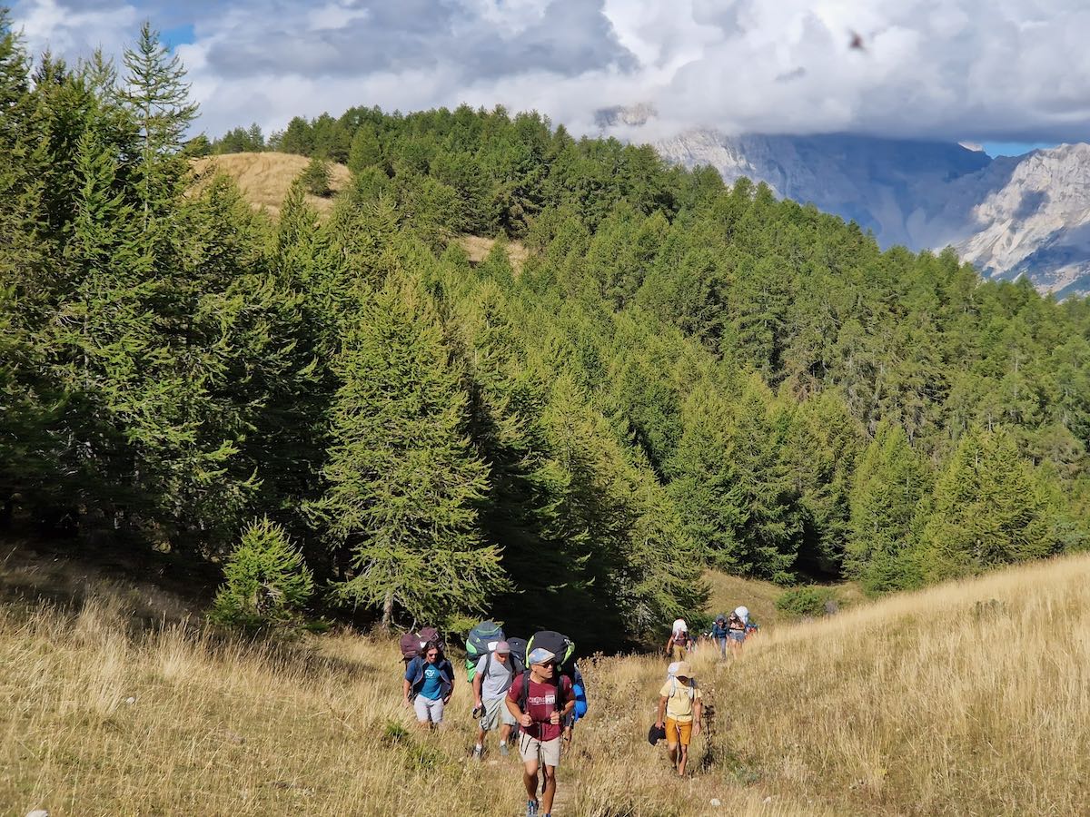 Vers 10h on attaque le sentier qui nous mène au déco. 20mn de marche pas trop raide pour arriver sur une belle pente d’herbe sèche parsemée d’innombrables bouses de vache (attention où tu étales…).