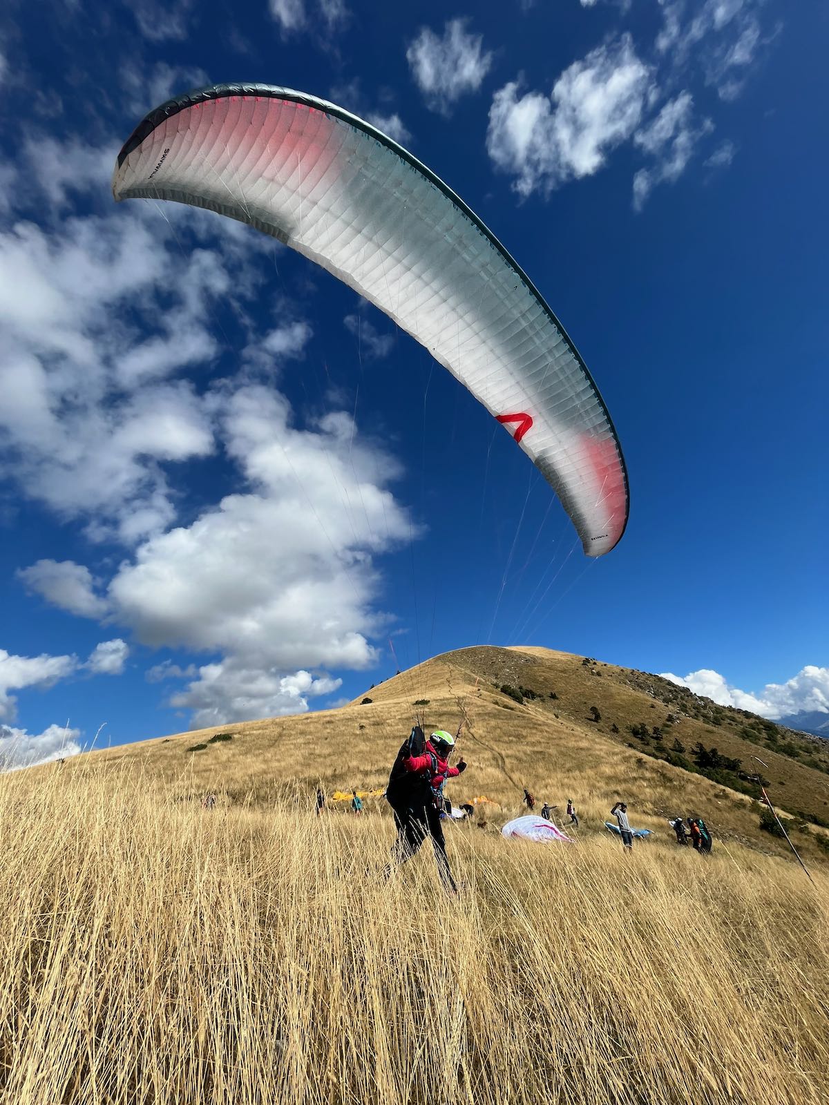 Ça monte facilement, je fais le start à 1800 m, je dois être dans les 15 mais je rattrape beaucoup de voiles en arrivant à B1 (je force un peu le passage, il faut que ça reprenne dans les pierriers du Pic de Bure autrement je vais être mal. Ici, il n’y a rien de vraiment posable, mais d’expérience le coin est une vraie catapulte et avec les cums qui forment au-dessus de la voile, no soucy) et ça marche. J’ai rattrapé le groupe de tête.