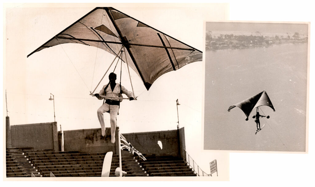 Le deltaplane n’en était encore qu’à ses balbutiements au milieu des années 60, quand Bill — athlète accompli, champion de barefoot et showman dans l’âme — découvrit un engin révolutionnaire : le nouveau cerf-volant imaginé par John Dickenson.