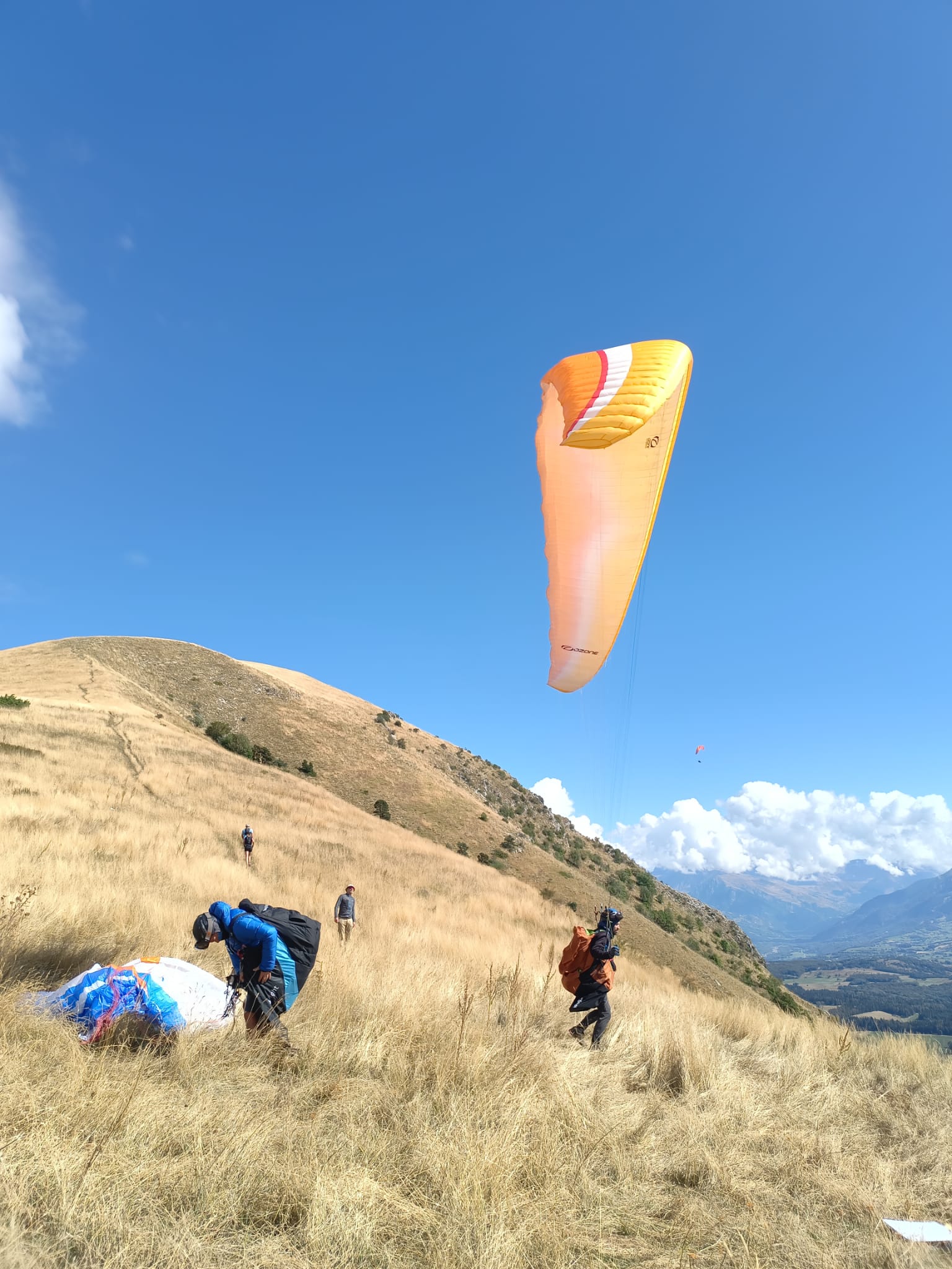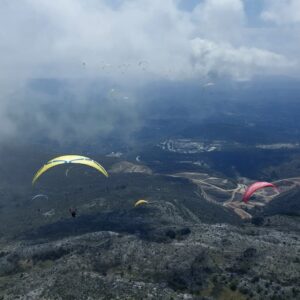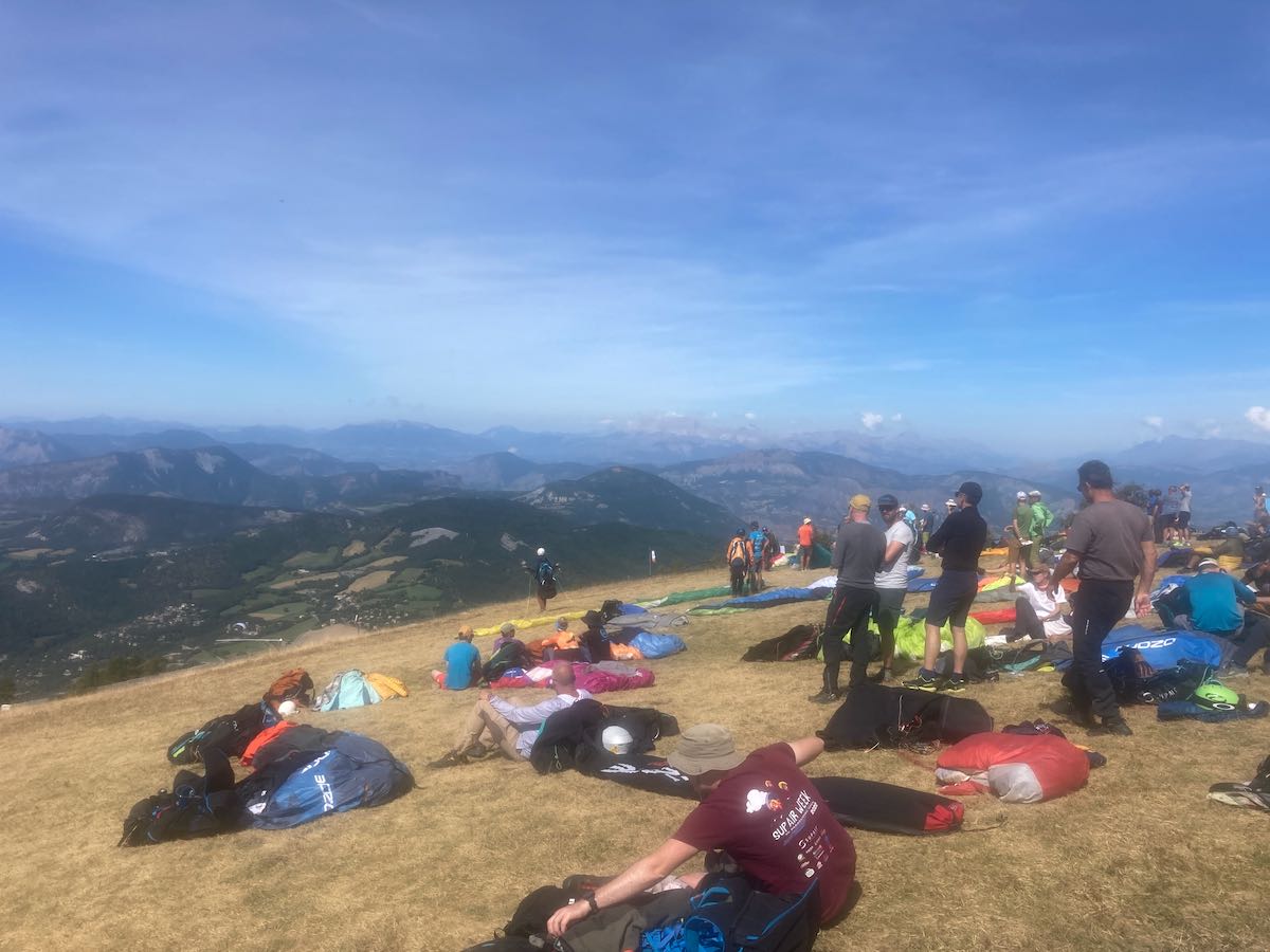 La compète de Bleine du 22-23 avril 2023 a réuni 44 pilotes, j’étais le seul représentant du CHVD. La première manche s’est déroulée sur 42 km entre le site du col de Bleine et l’atterro de Gréolière. La vraie difficulté de cette manche, outre un fort vent d’ouest (parallèle à la crête) et des thermiques costauds, c’était qu’à partir de la transition vers Gréolière, le plafond était limité à 2000m par la TMA de Nice. Ce qui a été fatal à plusieurs concurrents. Il y avait aussi la B3 (que j’ai loupée) qu’on pouvait claquer très loin à l’est sans suivre la ligne optimisée (ce que fait Corentin qui gagne cette manche en 1h 24 sous un Bonanza 3). La deuxième manche s’est déroulée sur 40 km à partir du déco de Gourdon (le col de Bleine est pris dans les nuages). La manche est lancée sur un classique zig zag entre les maisons bulles de l’architecte Anti Lovagh et le circuit de karting. Le plafond est très bas et tout le monde est monté au moins une fois dans le nuage ! Le problème à Gourdon c’est qu’il n’y a pas grand chose pour poser une fois qu’on s’éloigne de l’atterro officiel… Un compétiteur ne trouvera rien d’autre qu’une route pour se vacher (il a laché trop tard sous Kenedy et ses tremplins delta pour rejoindre l’imense champ salvateur). Laurent Emery gagne cette manche en 1h 15 sous une Zeno 2. Au général c’est Corentin Lami qui remporte cette compète, votre serviteur place le CHVD à la 18ème place.