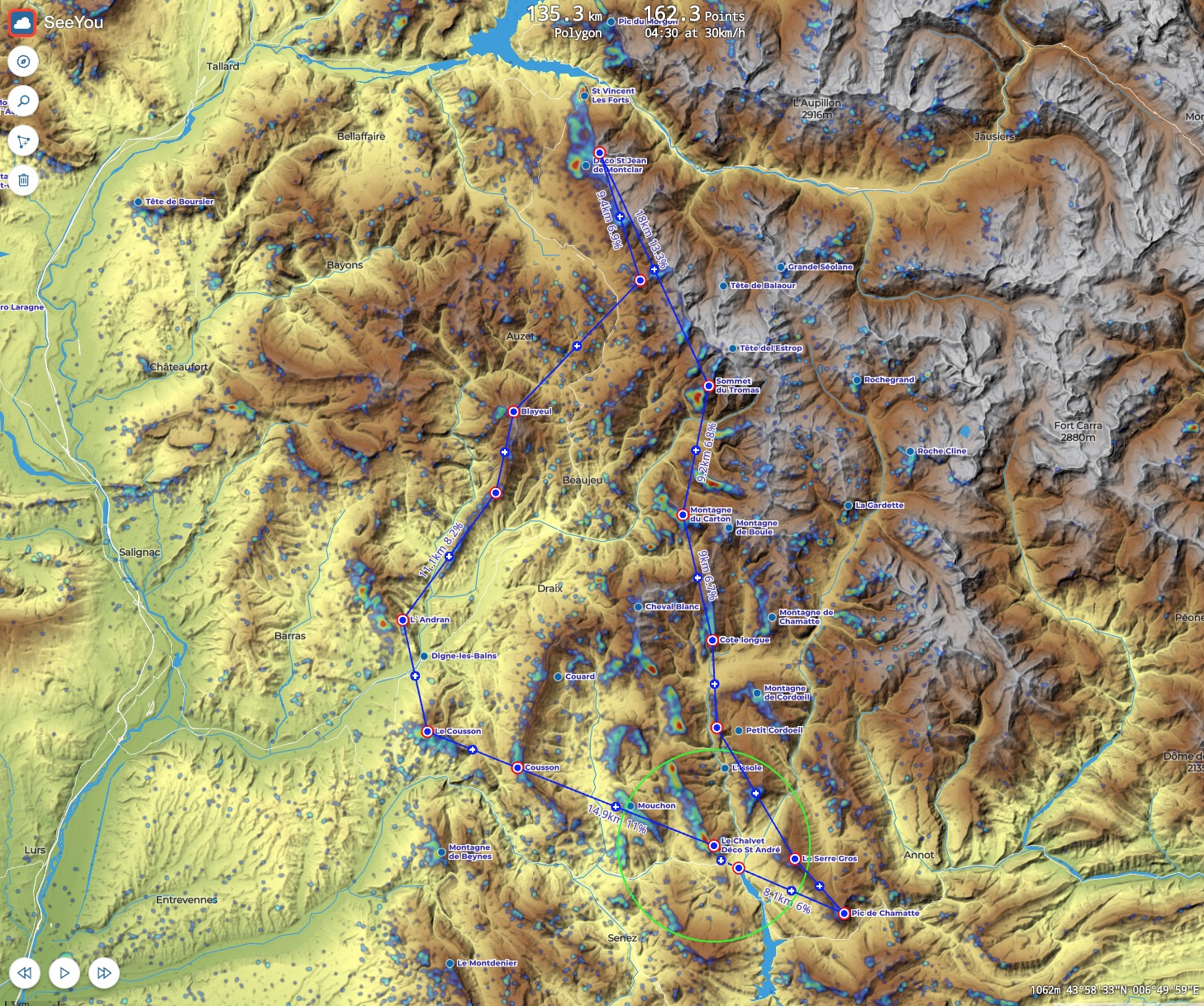 Projets | Alpes du sud | St-André-les-Alpes St-André – 135 km FAI par Digne et Dormillouse Voir parcours sur XC Planner - SeeYou 1 Commentaire Jacques Bayol sur 27 août 2023 à 18h27 J’ai fait une bonne partie de ce parcours lors de la Trans’Alps 2023. Voir la trace sur cette page : Réponse Soumettre un commentaire Annuler la réponseVotre adresse e-mail ne sera pas publiée. Les champs obligatoires sont indiqués avec *Commentaire * Nom * E-mail * Site web Enregistrer mon nom, mon e-mail et mon site dans le navigateur pour mon prochain commentaire. Soumettre le commentaire Δ Partager Cliquer pour envoyer un lien par e-mail à un ami(ouvre dans une nouvelle fenêtre) E-mail Cliquez pour partager sur WhatsApp(ouvre dans une nouvelle fenêtre) WhatsApp Cliquez pour partager sur Facebook(ouvre dans une nouvelle fenêtre) Facebook
