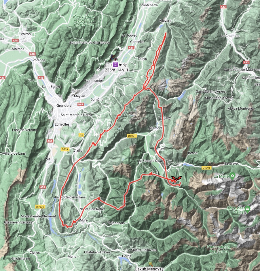 Projets | Écrins | Les 2 Alpes 2 Alpes – FAI 122 km Michel MartinOzone Mantra 703/05/2023 Trace sur FlyXc Triangle FAI de 122 km au départ des 2 Alpes, direction Belledonne… et retour par La Mure 0 commentaires Soumettre un commentaire Annuler la réponseVotre adresse e-mail ne sera pas publiée. Les champs obligatoires sont indiqués avec *Commentaire * Nom * E-mail * Site web Enregistrer mon nom, mon e-mail et mon site dans le navigateur pour mon prochain commentaire. Soumettre le commentaire Δ Partager Cliquer pour envoyer un lien par e-mail à un ami(ouvre dans une nouvelle fenêtre) E-mail Cliquez pour partager sur WhatsApp(ouvre dans une nouvelle fenêtre) WhatsApp Cliquez pour partager sur Facebook(ouvre dans une nouvelle fenêtre) Facebook