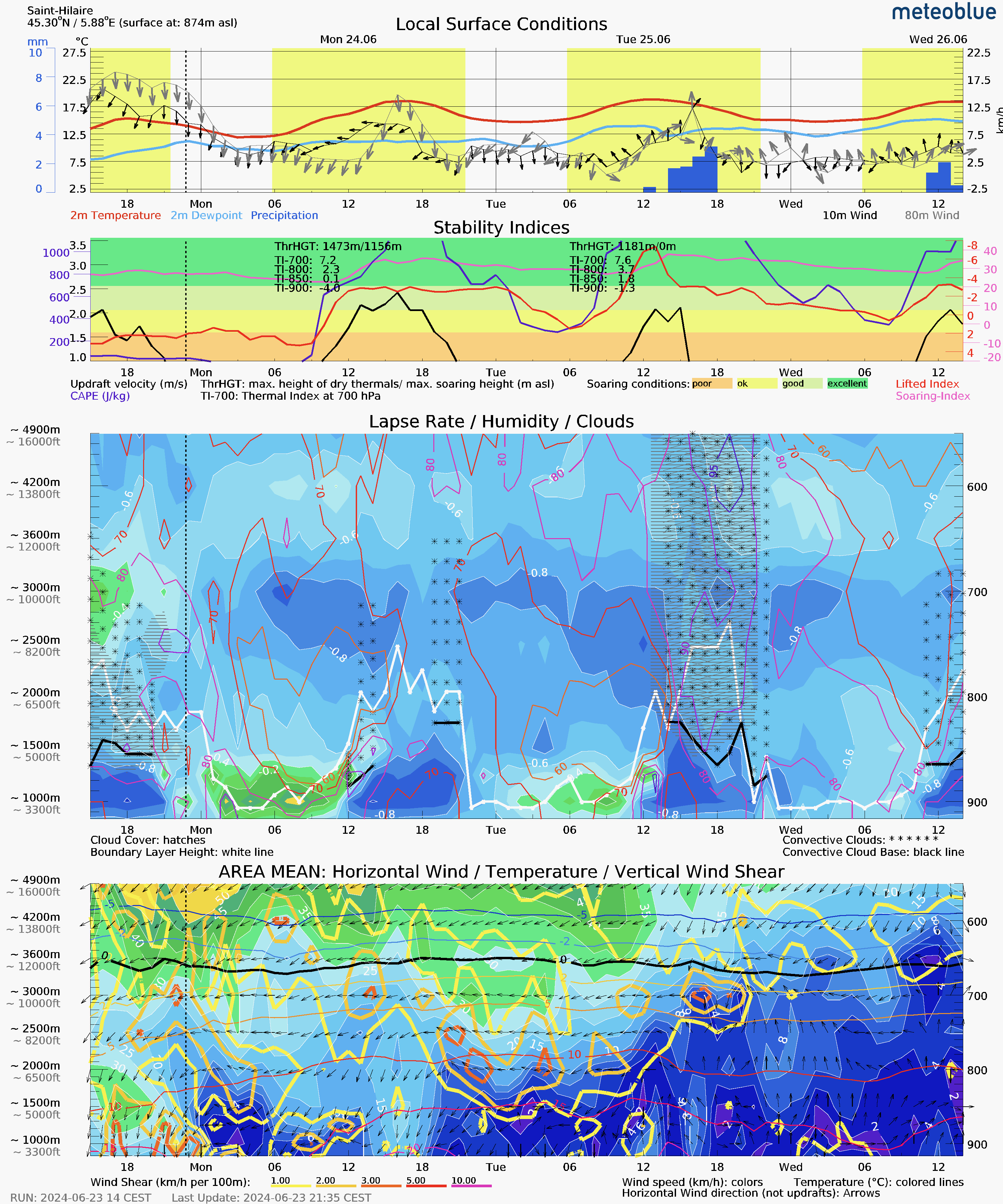 Prévisions pour St-Hil le 24/06/2024 établies le 23/06/2024 à 22h 30