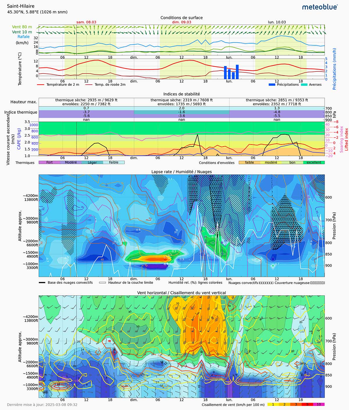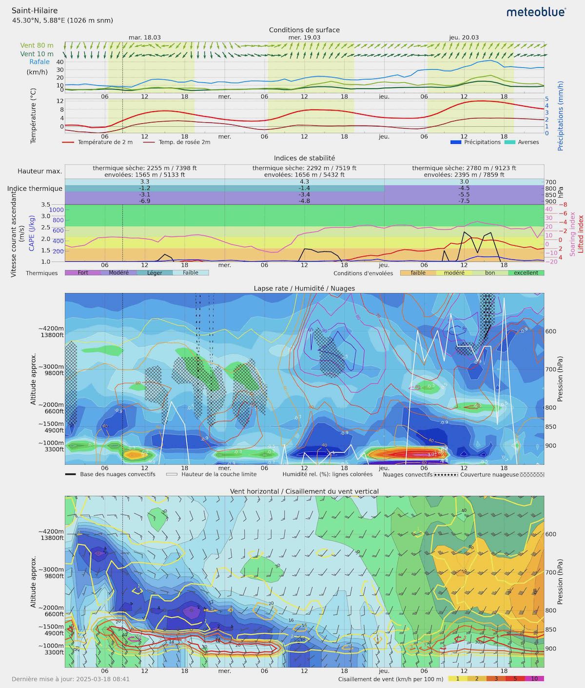 Instabilité : Bonne (-5,7) jusqu’à 1500 m avec une inversion à 2000 m