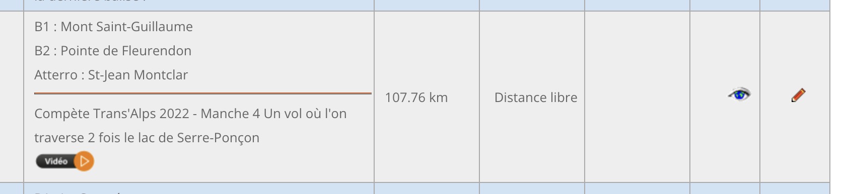 Pour modifier la fiche d’un vol il faut cliquer sur le crayon rouge à droite de la ligne où s’affiche le vol.