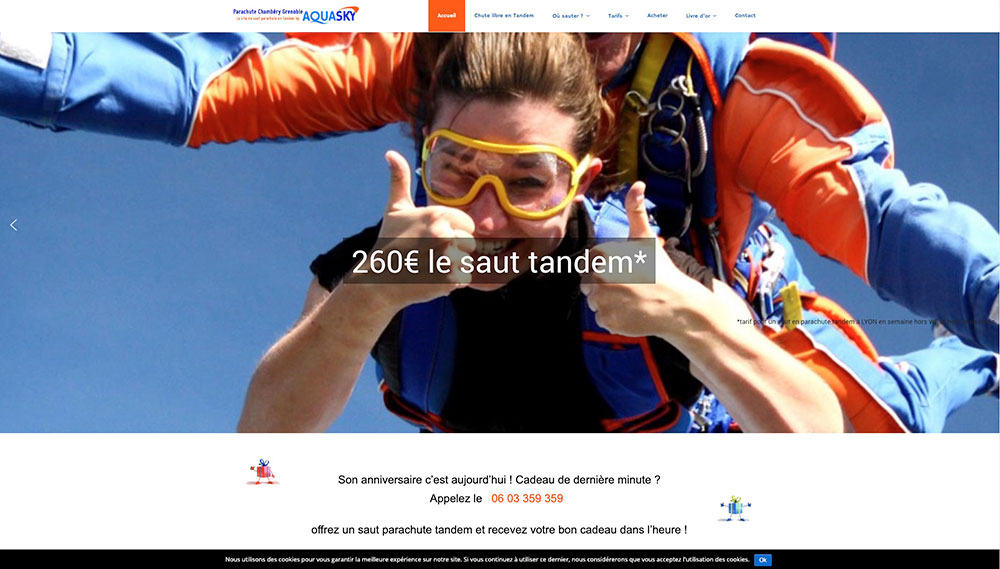 Site marchand pour une entreprise de saut en parachute à Lyon et Grenoble